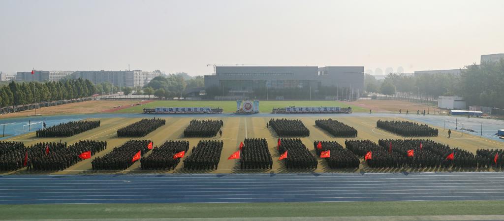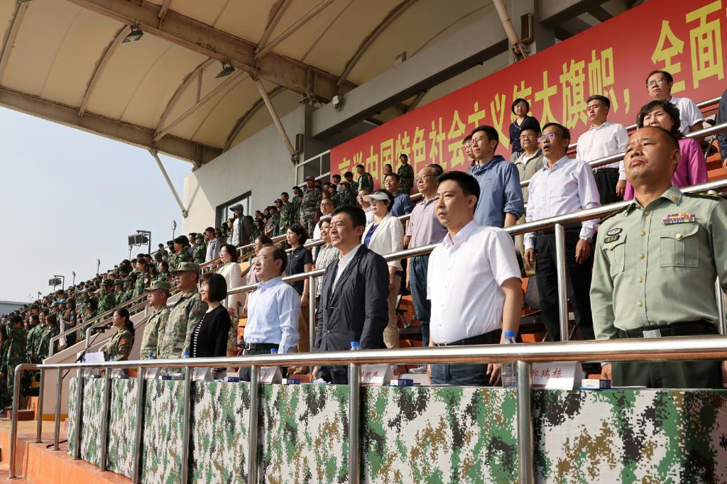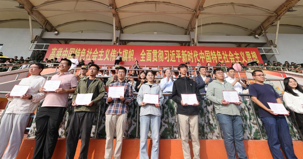本站讯(通讯员 焦志麒 张立新)秋光潋滟,旌旗飞扬。9月30日上午,天津师范大学2025级学生军事技能训练成果汇报大会在主体育场举行。校党委书记曲凯,市教委二级巡视员张健青,校党委副书记董洪霞、陈玳玮,中国人民解放军66018部队领导,天津市西青区人民武装部上校副部长郑瑞栋出席大会。学校职能处室、学部(院)主要负责同志及师生代表现场观摩。