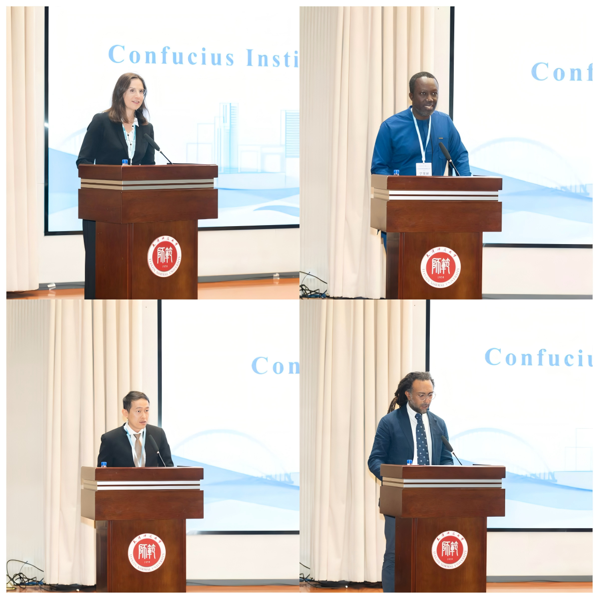 结业仪式上,德国杜伊斯堡-埃森大学鲁尔都市孔子学院院长苏珊娜・勒尔、柬埔寨王家研究院孔子学院的院长陈统崇、加纳恩克鲁玛科技大学孔子学院院长丹尼尔・亚乌、巴巴多斯西印度大学凯夫希尔分校孔子学院院长切・利昂・科尔宾作为各洲院长代表先后发言。院长们一致认为院长研修弥足珍贵,获益良多,对中国国际中文教育基金会主办本次研修活动和天津师范大学的精心组织表示衷心感谢,本次研修组织安排周到细致,课程设置及考察交流务实高效,不仅深化了对孔子学院运行机制的理解,还收获了难得的跨国合作经验,院长们彼此建立起深厚友谊,对将来工作开展至关重要。
