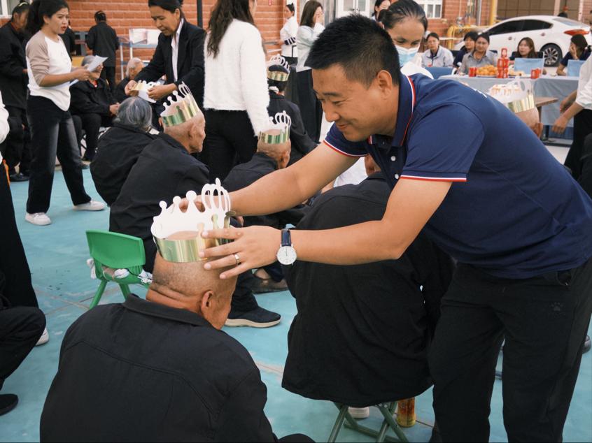适逢重阳节,支教团与志愿服务队还为老人们精心准备了文艺汇演,并为近期过生日的老人举办集体生日会。歌曲、舞蹈、诗朗诵等节目轮番上演,赢得了老人们的阵阵掌声。在共唱生日歌、分享生日蛋糕的温馨时刻,老人们脸上洋溢着幸福的笑容。活动最后,大家手拉手,载歌载舞,在欢声笑语中共度佳节。