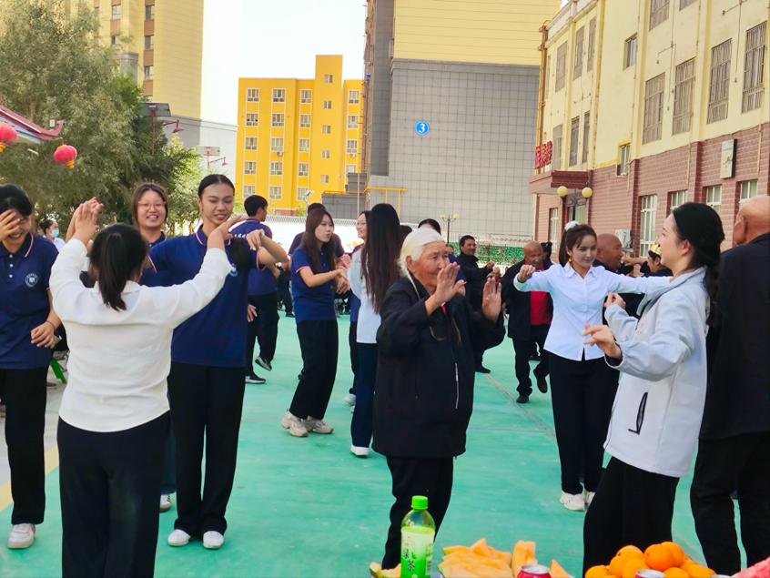 本站讯(通讯员 徐可)重阳佳节到来之际,天津师范大学赴新疆和田地区实习支教团走进当地康逸养老中心,开展以“共建基地、组建队伍、开班授课、重阳送暖”为主题的系列敬老活动,为老人们送去来自天津的关怀与温暖,传递民族团结的真挚情谊。