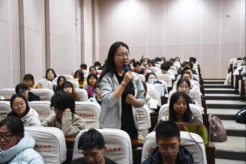 在交流环节,李翠松与现场学生亲切互动,耐心解答了关于教学实践、职业成长与从教信念等方面的问题。同学们表示,李书记所讲的“教育的情怀、科学的思维、工匠的专注”,更加坚定了自己以教育家精神为引领,扎根课堂、潜心育人的决心。本次报告会是天津市“三校一院”教师教育创新平台在本学期举办的第二场活动,标志着“三校一院”卓越教师大讲堂系列活动的常态化推动。该讲堂将作为推动“七大融通”机制落地、深化“思政融通”的重要载体,持续围绕教育家精神、科学家精神、工匠精神等主题开展专题报告,助力构建具有天津特色的横向融通、纵向贯通的教师教育培养新体系。