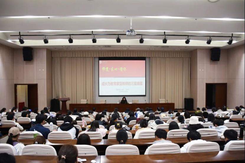 李翠松结合教育家精神的六大方面,生动解读了其与科学家精神、工匠精神的融通关系。她强调,教育家精神并非抽象理念,而是体现在日常教育教学的生动实践中。报告中,她援引天津一中老校长韦力等教育家的感人事迹,结合一线教学、课程开发、青年教师培养等丰富案例,强调教师应在言传身教中示范、在教学一线中扎根、在个人成长中融入国家使命,真正做到为党育人、为国育才。
