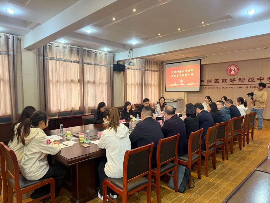 董洪霞先后来到哈密市第四中学、定西市安定区东关小学和重庆市开州区敦好初级中学看望慰问我校第二十七届研究生支教团成员,察看校园环境,实地走访生活住地。董洪霞代表校党委向各支教地团委、教育局、学校对我校支教团学生的关心支持表示衷心感谢。在座谈交流会上,董洪霞分别听取了各研究生支教团分团的工作汇报和支教团成员的收获感悟。她表示,支教团学生在两个多月的时间里能够迅速克服地域差异,主动融入新环境,在教育教学工作中播撒知识种子,传承红色基因,全面促进学生成长成才,充分展现了天津师大学子昂扬向上的青春风采和使命担当。