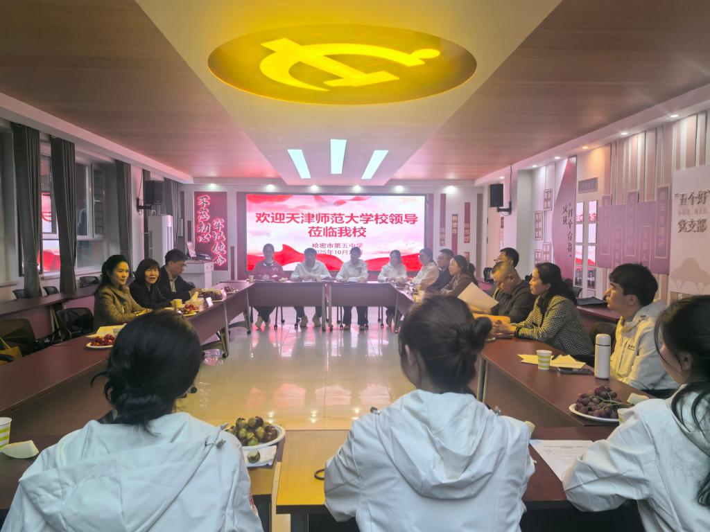 在和田学院,董洪霞与和田学院党委书记季峰进行了深入交流。季峰详细介绍了学校发展建设规划和与内地高校共建情况。董洪霞表示,天津师范大学将认真落实对口支援和田部署要求,发挥学校特色优势,在师资队伍建设、学科专业设置、管理体系建设等领域持续深化务实合作,为推进和田学院高质量发展贡献力量。董洪霞还看望了在和田学院援派锻炼的辅导员、任教师生,对他们援疆以来开展的各项工作给予充分肯定,并勉励他们继续为边疆教育事业的高质量发展贡献力量。