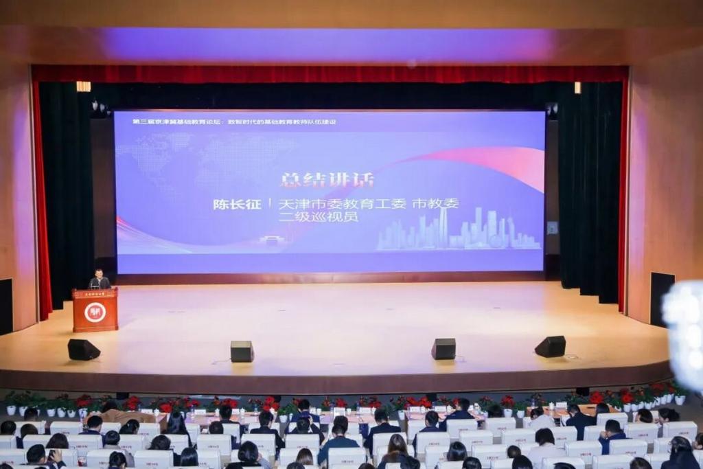 本站讯(通讯员 祝庆轩)11月9日下午,第三届京津冀基础教育论坛——“数智时代的基础教育教师队伍建设”分论坛在天津师范大学国际学术交流中心举行。市教育两委二级巡视员陈长征、天津师范大学党委副书记陈玳玮、天津市教科院副院长唐悦奇出席,市教委教师工作处处长邵树斌主持。天津市教育两委相关处室、各区教育局及教师发展中心负责同志,天津市“十四五”教师培训重点项目全体学员,北京市、河北省13个地市和雄安新区的50余位教师校长代表共600余人参加。