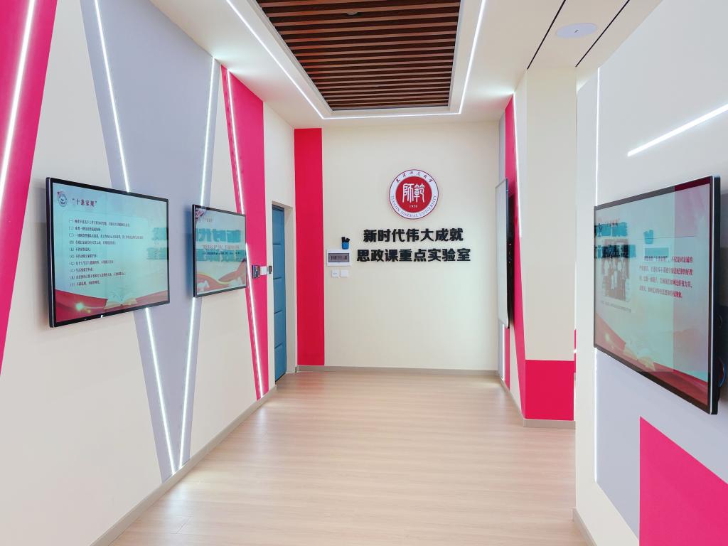 实验室主要用于习近平新时代中国特色社会主义思想概论等课程教学,同时服务于大中小学思政课一体化建设、党政领导干部教育等,以46块立体环绕智能化电子屏展现新时代伟大成就,通过一键切换的智能设备、形式多元的课程资源,鲜活的案例素材为思政课实践教学开辟了全新方式,增强了教学的互动性与吸引力,有利于将思政课“讲深、讲活”,上出“新味道”。