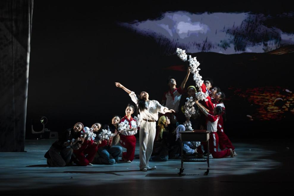 舞剧展现了数十年后,秀琴的外孙女林晓循着精神脉络远赴新疆支教,在天山脚下书写新时代的奉献篇章:她帮助辍学儿童重返课堂,用知识阻断贫困代际传递;她助力棉田丰收,将产业帮扶与文化交流相结合。舞蹈系创作团队紧扣“教育援疆”“文化润疆”国家战略,让“棉田雪浪”与“铁水奔涌”形成时空交织的舞台意象;同学们以细腻的情感表达,展现了林晓与边疆群众的深厚联结,成为促进各民族交往交流交融、铸牢中华民族共同体意识的鲜活艺术载体。