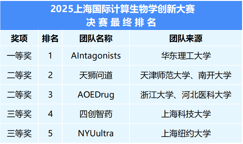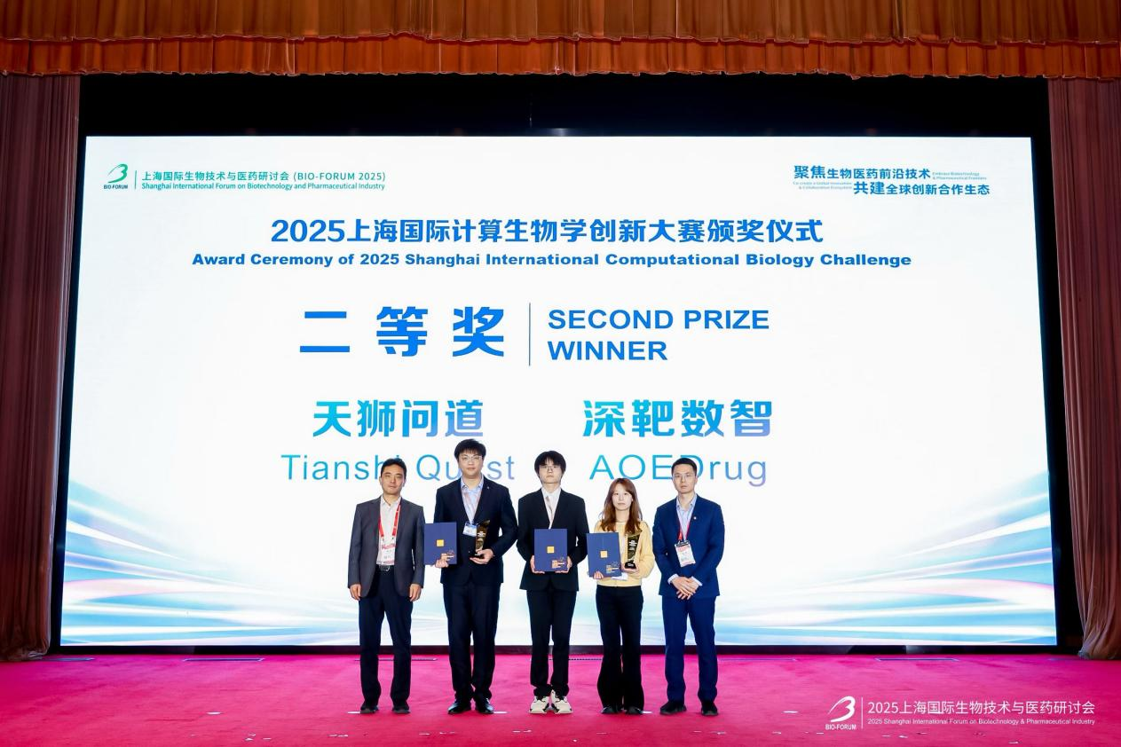 本站讯(通讯员 严迪)近日,第二届上海国际计算生物学创新大赛结果正式揭晓,由天津师范大学人工智能学院教师孙畅带领的“天狮问道” 团队凭借卓越的创新能力与扎实的科研功底,以总分第二名的优异成绩荣获大赛二等奖,为学校在人工智能辅助药物研发领域再添亮眼成果。颁奖仪式在上海国际生物技术与医药研讨会(BIO-FORUM 2025)开幕式上举行。