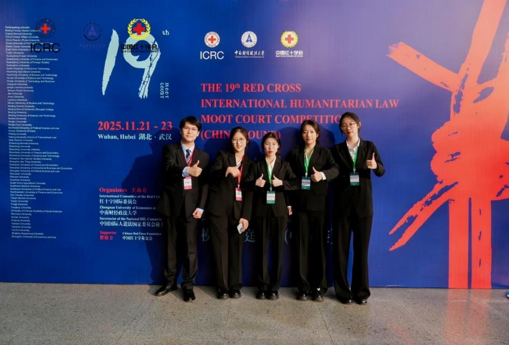 代表队由法学院栗孝一、张嘉琳、王楠瑛、张嘉琪、成伊菲5位学生组成,由国际法教研室方熠老师担任指导教师。竞赛全面检验了队员的法律文书检索与撰写能力,队员们研读大量英文资料与国际判例,撰写的书状逻辑严密、论证精准,庭审辩论逻辑清晰,展现了扎实的法律分析能力与良好的专业素养。