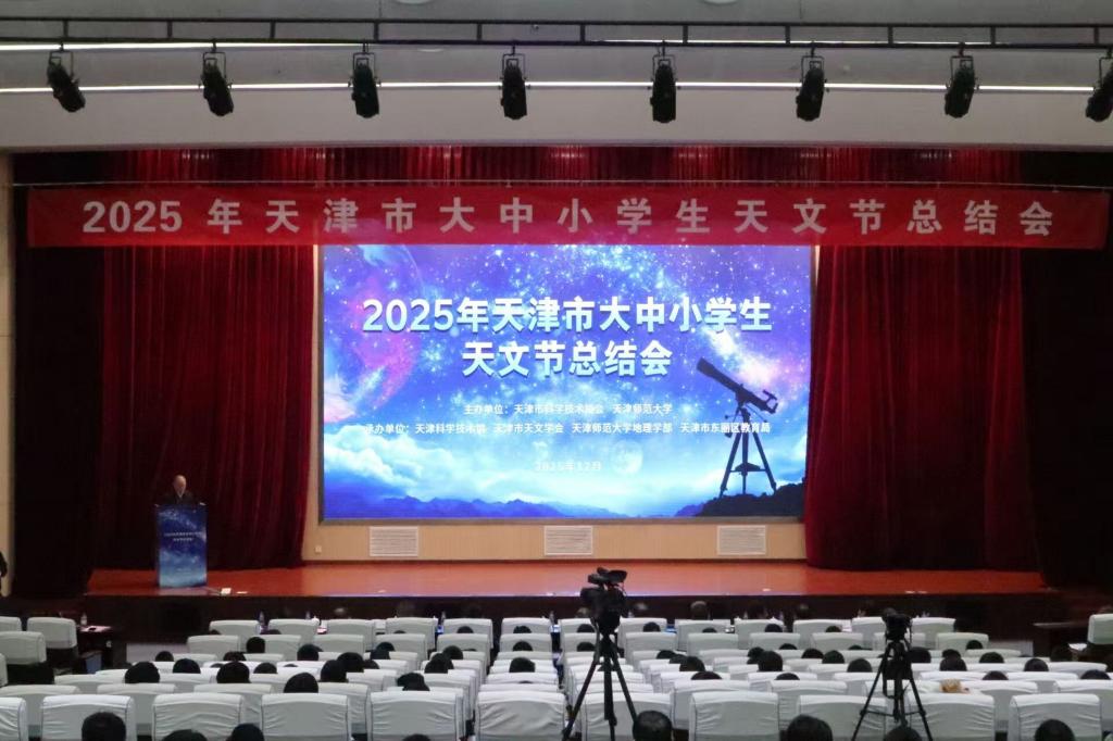 本站讯(通讯员 陈洁)12月14日下午,由天津市科学技术协会、天津师范大学联合主办,天津科学技术馆、天津市天文学会、天津市东丽区教育局、天津师范大学地理学部承办的天津市2025年大中小学生天文节总结会在我校举行。中国天文学会副理事长吴学兵、天津市科协二级巡视员侯建国出席总结会,我校党委常委、副校长白学军出席会议并致辞。天津市大中小学生及天文爱好者共350余人参加本次活动。