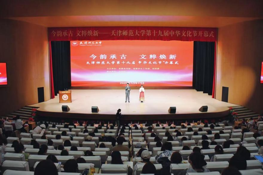本站讯(通讯员 刘兆文)12月17日,由校党委宣传部、党委学生工作部、校团委主办,文学院承办的“今韵承古 文粹焕新”天津师范大学第十九届中华文化节开幕式在国际交流中心举办。校党委副书记董洪霞出席并致辞。党委宣传部、党委学工部、国交处、校团委有关负责同志及文学院全体领导班子出席本次活动。来自各学院的学生代表和港澳台学生、留学生代表共计600余人参加活动。