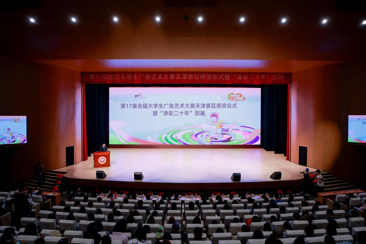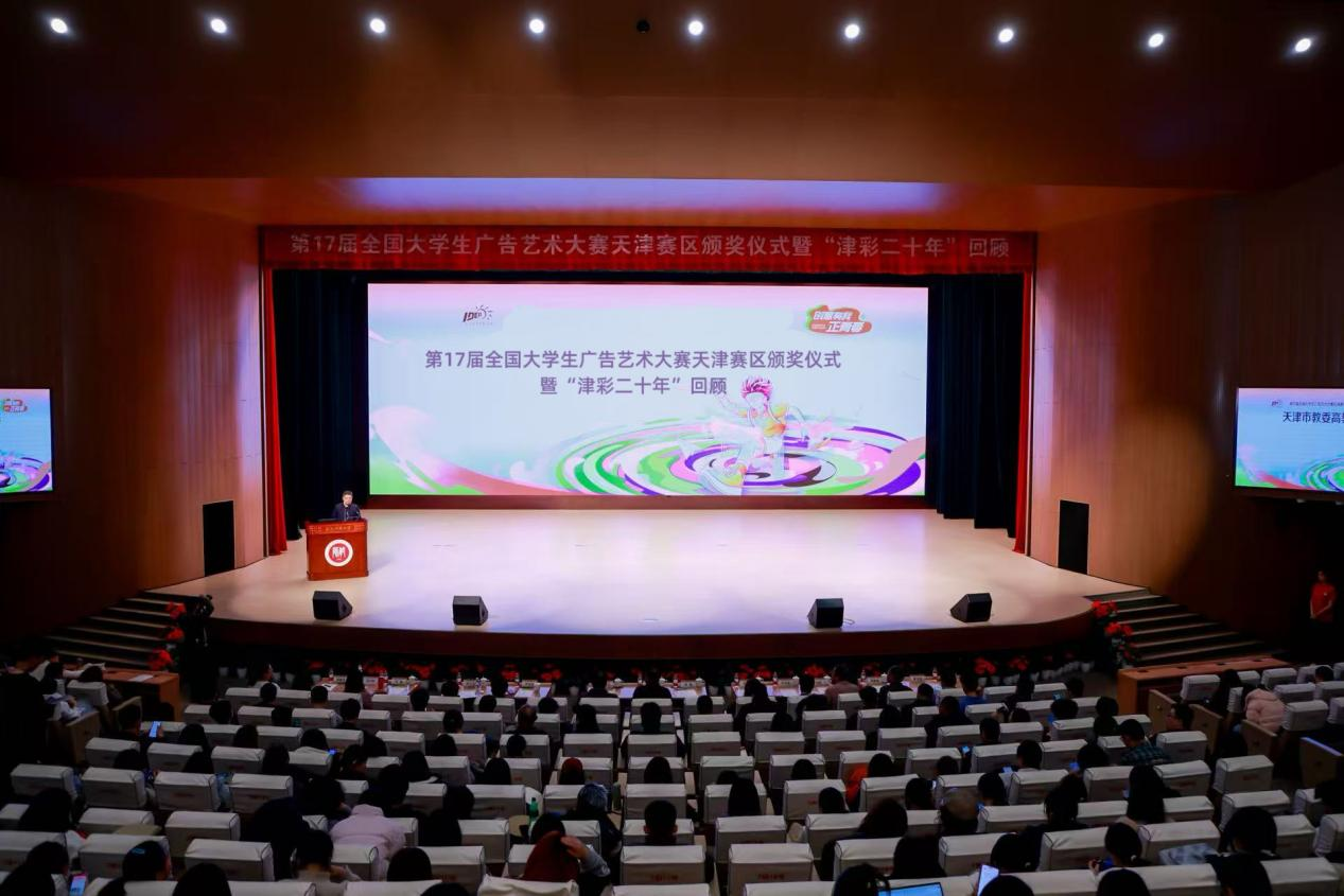 本站讯(通讯员 李柯剑)12月18日,第17届全国大学生广告艺术大赛(以下简称“大广赛”)天津赛区竞赛颁奖仪式暨“津彩二十年”回顾活动在天津师范大学国际学术交流中心举行。天津师范大学党委常委、副校长纪德奎,天津市教育委员会高等教育处处长徐震,天津市市场监督管理委员会广告处处长宗红哲,大广赛天津赛区竞赛专家委员会主任范志国,以及来自天津20余所高校的有关部门、学院领导、获奖师生和京津两地知名广告行业代表等600余人参加活动。