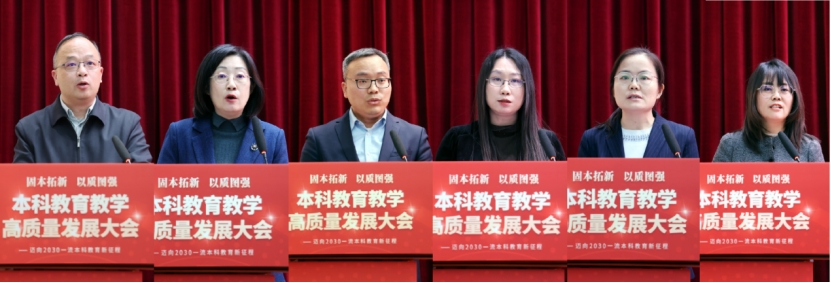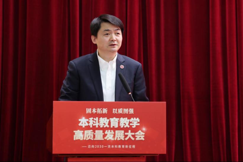 曲凯在讲话中指出,本科教育教学大会是学校在“十四五”收官、迈向“十五五”发展新征程的关键节点召开的一次具有基础性、战略性、引领性的重要会议。他提出,要立足时代方位,深刻把握召开本科教育教学高质量发展大会的战略考量。大会既是对过去五年本科教育教学成效的系统总结,更是面向未来推动深层次改革、实现人才培养质量整体性跃升的前瞻谋划和动员部署。要聚焦关键环节,系统推动本科教育教学质量全面跃升。以“高质量发展”为首要任务、以“数智赋能”为关键驱动、以“系统集成”为重要方法论,推动改革行稳致远。要强化组织实施,全力确保各项改革任务落地见效。强化党的领导,切实把牢改革的方向、原则和大局;压实学院主体责任,让改革真正发生在课堂与师生身上;构建协同推进机制,构建保障有力、运行高效的落实体系。他强调,全校上下要以追求卓越的奋进姿态、勇立潮头的担当精神,凝心聚力、笃行实干,砥砺奋进“十五五”新征程,奋力谱写学校高质量发展新篇章。