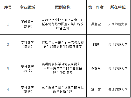 本站讯(通讯员 徐梅芳)近日,全国教育专业学位研究生教育指导委员会公布了第七届全国教育专业学位教学案例征集评审结果。天津师范大学共有4篇教学案例入选,入选数量位列全国师范院校第四,天津市高校并列第一。