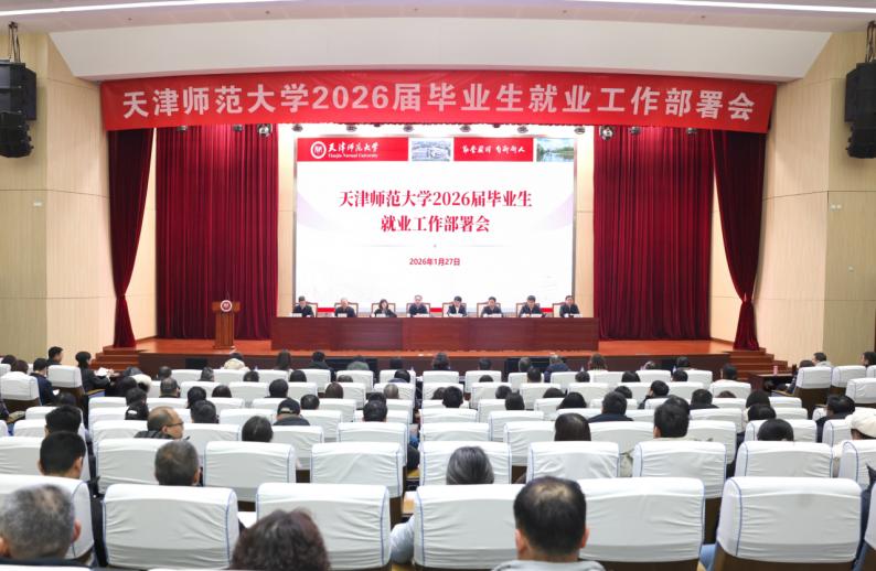 本站讯(通讯员 程光灿 张立新)1月27日,天津师范大学召开2026届毕业生就业工作部署会,聚焦毕业生高质量充分就业目标,扎实推进2026届毕业生就业工作。校党委书记曲凯出席会议并讲话,校党委副书记、校长巩金龙部署学校2026届毕业生就业工作,校领导陈玳玮、白学军、佟德志、秦龙、纪德奎出席,会议由校党委副书记董洪霞主持。