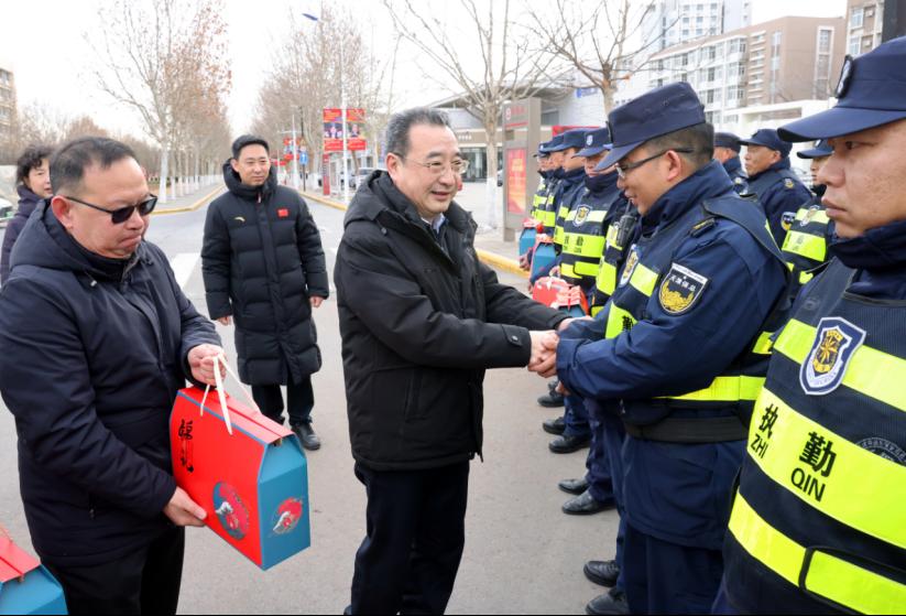 本站讯(通讯员 张立新)2月15日,农历腊月二十八,在丙午新春即将到来之际,校党委书记曲凯深入校园一线,走访慰问春节期间坚守岗位的教职员工、安保人员和后勤保障队伍,代表学校向大家致以诚挚的节日问候和新春祝福。校党委副书记陈玳玮参加。