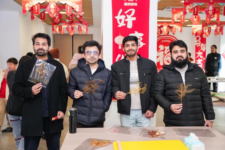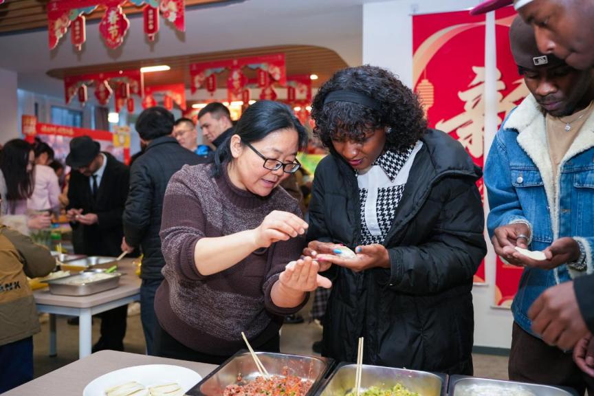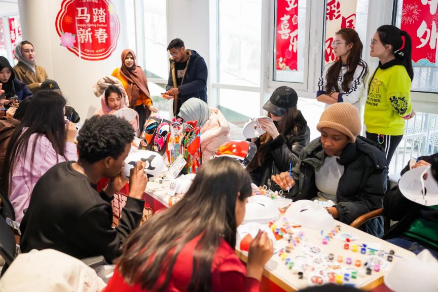 主题文化市集结合马年主题,设置了非遗体验区和文化体验区。非遗体验区特地邀请到了泥人张、杨柳青年画等非遗传承人团队为留学生们讲述生动的非遗文化故事。同时精心安排了书法体验、花钿绘制、京剧戏服体验、金石传拓、徽章制作等体验项目。活动还特别邀请了商氏面点非遗传承人商洪芳现场传授饺子制作技艺,留学生们分组体验,用指尖感受藏在春节中华传统美食中的文化底蕴,热气腾腾的饺子让他们在异乡也找到了家的温度。此次文化市集是延续天津师范大学精心打造的“万花筒”文化市集品牌的一次文化盛宴,汇聚艺术、创意、传统与现代的多元元素,搭建起多元文化交流平台,促进来自世界各地的留学生互学互鉴,感受津派文化的多彩脉动。
