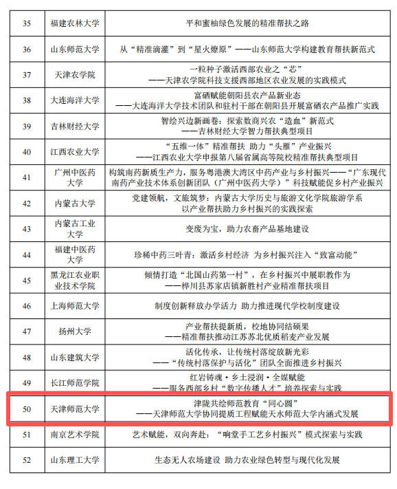 本站讯(通讯员 王文渊)近日,教育部发展规划司公布第八届省属高校精准帮扶典型项目推选结果,我校申报的《津陇共绘师范教育“同心圆”——天津师范大学协同提质工程赋能天水师范大学内涵式发展》项目成功入选。