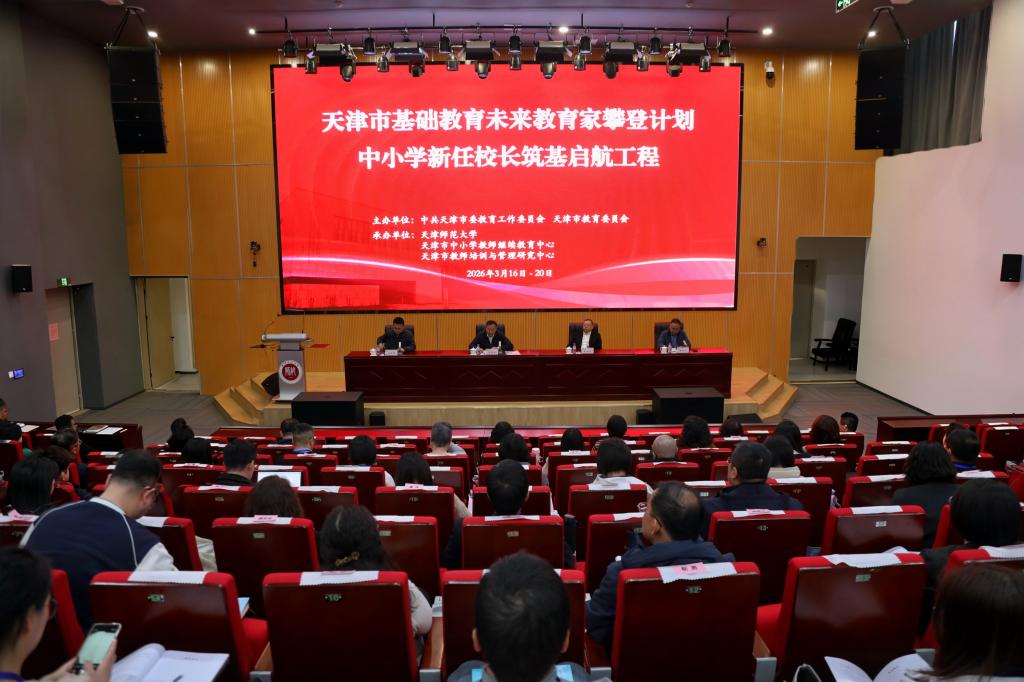 本站讯(通讯员 祝庆轩)3月16日,“天津市中小学新任校长筑基启航工程”2026年第2期培训班在天津师范大学京津冀教师发展协同创新中心开班。天津师范大学党委常委、副校长纪德奎,市教委教师工作处副处长鞠知达出席并讲话。天津市中小学教师继续教育中心主要负责同志主持开班式。来自全市各区的150位小学新任校长参加本次培训。