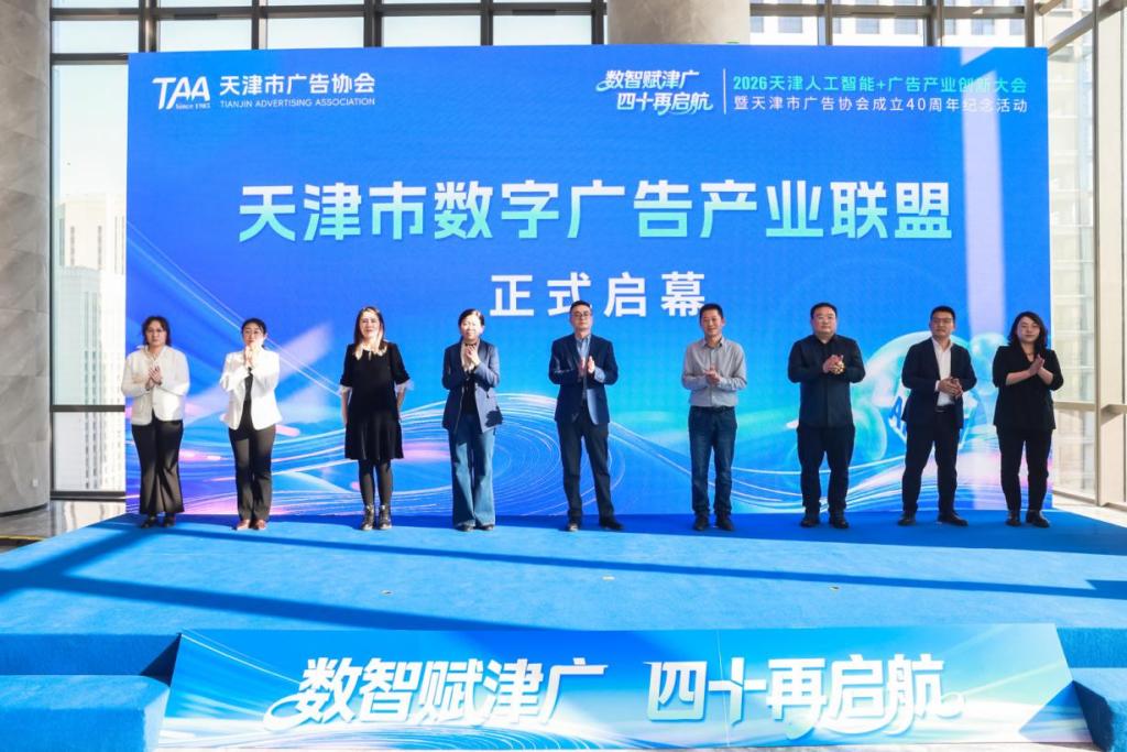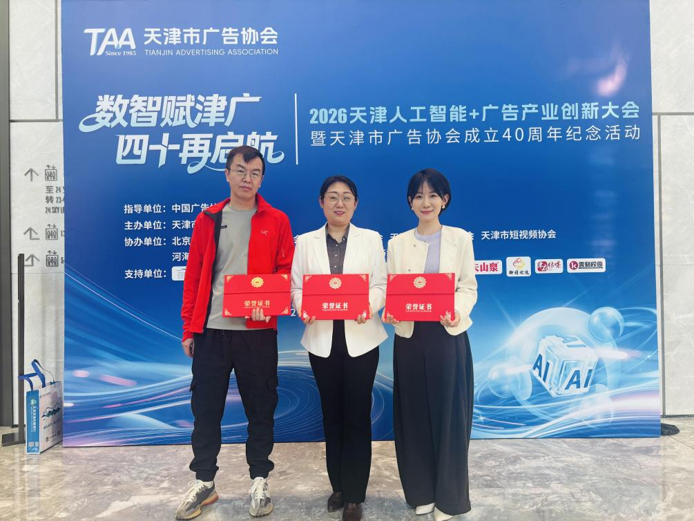 本站讯(通讯员 李柯剑)近日,“数智赋津广 四十再启航”2026天津人工智能+广告产业创新大会暨天津市广告协会成立40周年纪念活动在天津嘉里中心·企业广场举行。天津师范大学新闻传播学院副院长胡振宇、2005届校友张瑞麟、2011届校友宋雅雯荣获“天津广告四十年突出贡献人物”称号。同时,天津师范大学作为天津高校代表,由新闻传播学院牵头加入“天津市数字广告产业联盟”,将开展与多家数字企业的深度合作。