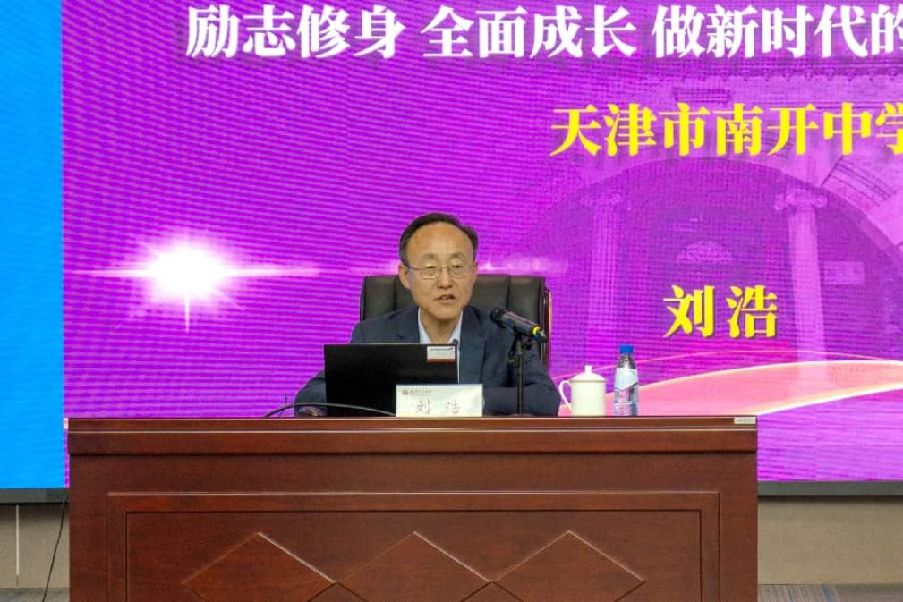 讲座中,刘浩以南开中学120年办学传承为脉络,从“家国情怀”“社会责任”“全面发展”三个维度,系统阐释了“允公允能,日新月异”校训的精神内核。他深情讲述了严修、张伯苓两位爱国教育家“变家塾为学堂”的创校初心,以及周恩来总理“为中华之崛起而读书”的成长历程,指出爱国是南开教育最鲜明的底色。