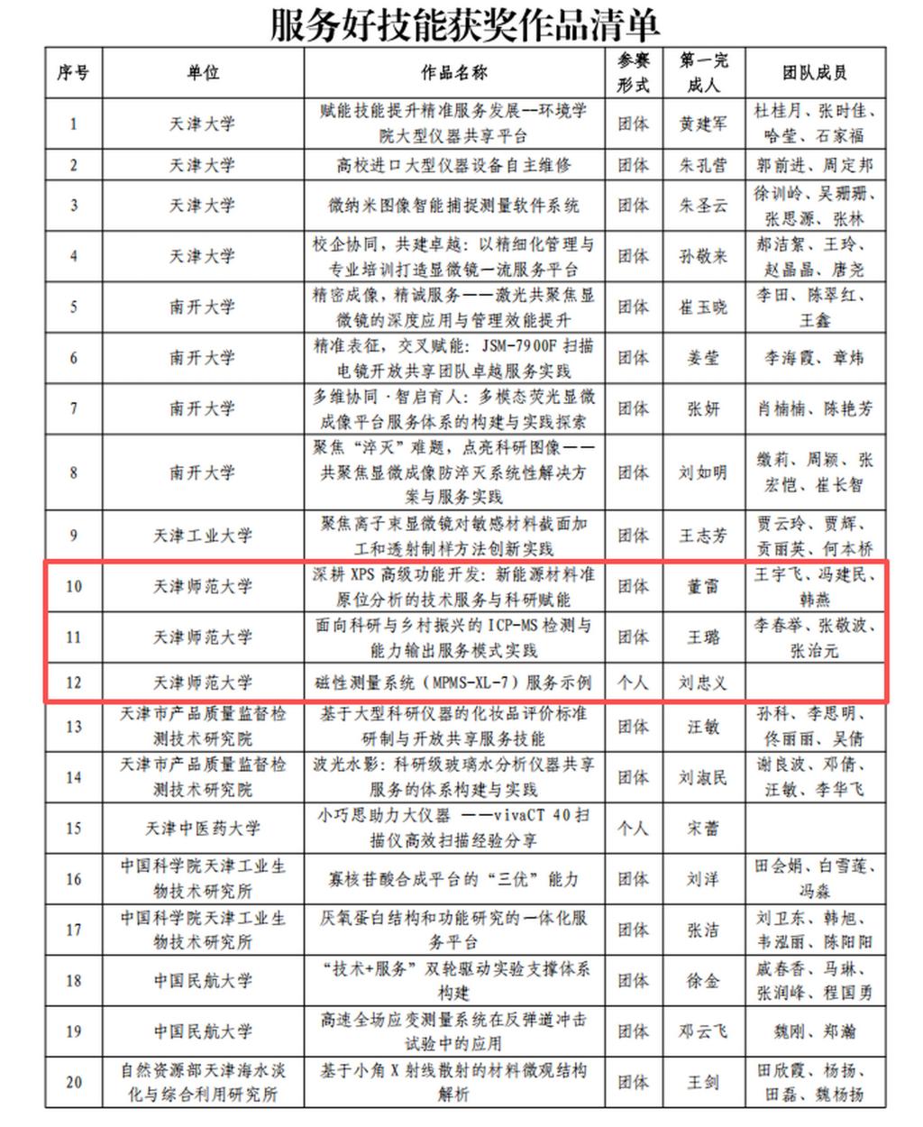 本次大赛由天津市大型科研仪器开放共享平台主办,设置创新好成果、服务好技能、管理好方法三个赛道,面向全市高校、科研院所开展专业评审。经专家严格遴选,我校取得了创新好成果团队奖3项,服务好技能团队奖2项、个人奖1项,管理好方法团队奖1项的优异成绩。