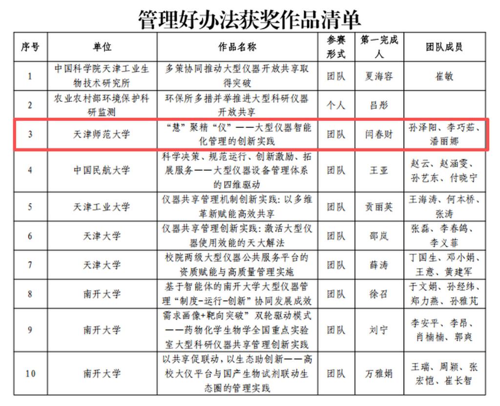 下一步,学校将以此次获奖为契机,持续完善开放共享长效机制,全面提升仪器使用效益与服务品质,培育更多优质科研成果与专业技术人才,为加快建设特色鲜明世界知名一流师范大学,助力天津市科技创新与高质量发展贡献更大力量。