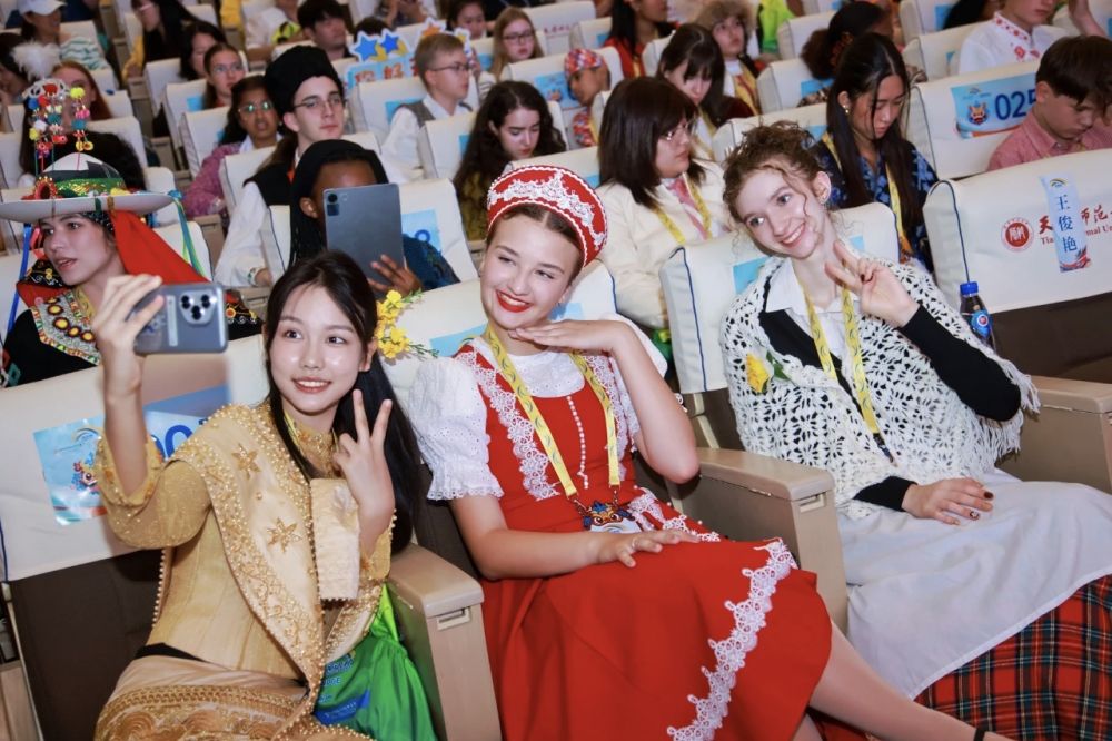 开幕式上,30名天津青少年以清脆嘹亮的歌声真情演唱了今年上合峰会期间唱响的《我在天津等你》。优美的旋律勾勒出天津的四季景致与地域文化符号,满腔热忱欢迎世界各地青少年的到来。传统与现代科技交融的表演《字脉千年》,通过人机组合联动,将传统舞蹈与律动欢快的查尔斯顿舞巧妙结合,呈现出传统与现代的美妙融合,象征着中华文化在数智时代跨越疆界,促进语言互通、理解互信、文明互鉴的美好愿景。