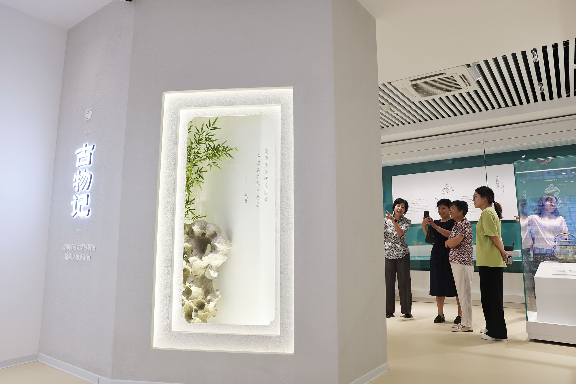 馆内“古物记——馆藏文物通识展”作为常设展览,甄选了近700件套文物精品,设置“金辉隐·青铜器”“泥火幻·陶瓷器”“笔底春·书画”“昆山璞·玉石器”“百工宝·工艺杂项”五大板块,以时间为经、品类为纬,串联新石器时代至近代的文明脉络。天津师范大学博物馆重点突出高校博物馆的教育属性,构建“收藏-研究-展览-教学”的完整闭环,让文物资源始终与学术研究、课程教学紧密联动,着力搭建文化传承协同育人平台,服务大中小一体化人才培养。博物馆不仅让全校师生广受裨益,更将有力推动高等教育与文化传承创新融合、提升服务文化教育成效,为打造天津文化教育高地作出更大贡献。
