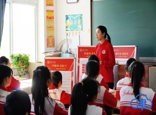 日前,天津师范大学马克思主义学院学生理论宣讲团与校研究生支教团走进蓟州区别山镇东定福庄村党群服务中心和杨家楼中心小学,以高频词解读、展板宣讲、“三句半”表演、书签传学等鲜活形式,将党的二十届四中全会精神送到村民和小学生身边,让理论与乡村实际紧密相连,为服务乡村振兴、深化青少年思想引领贡献青春力量。