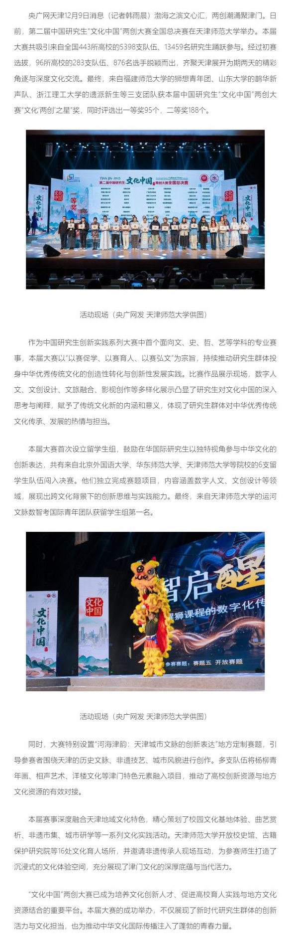 央广网 | 第二届中国研究生“文化中国”两创大赛在津举办
