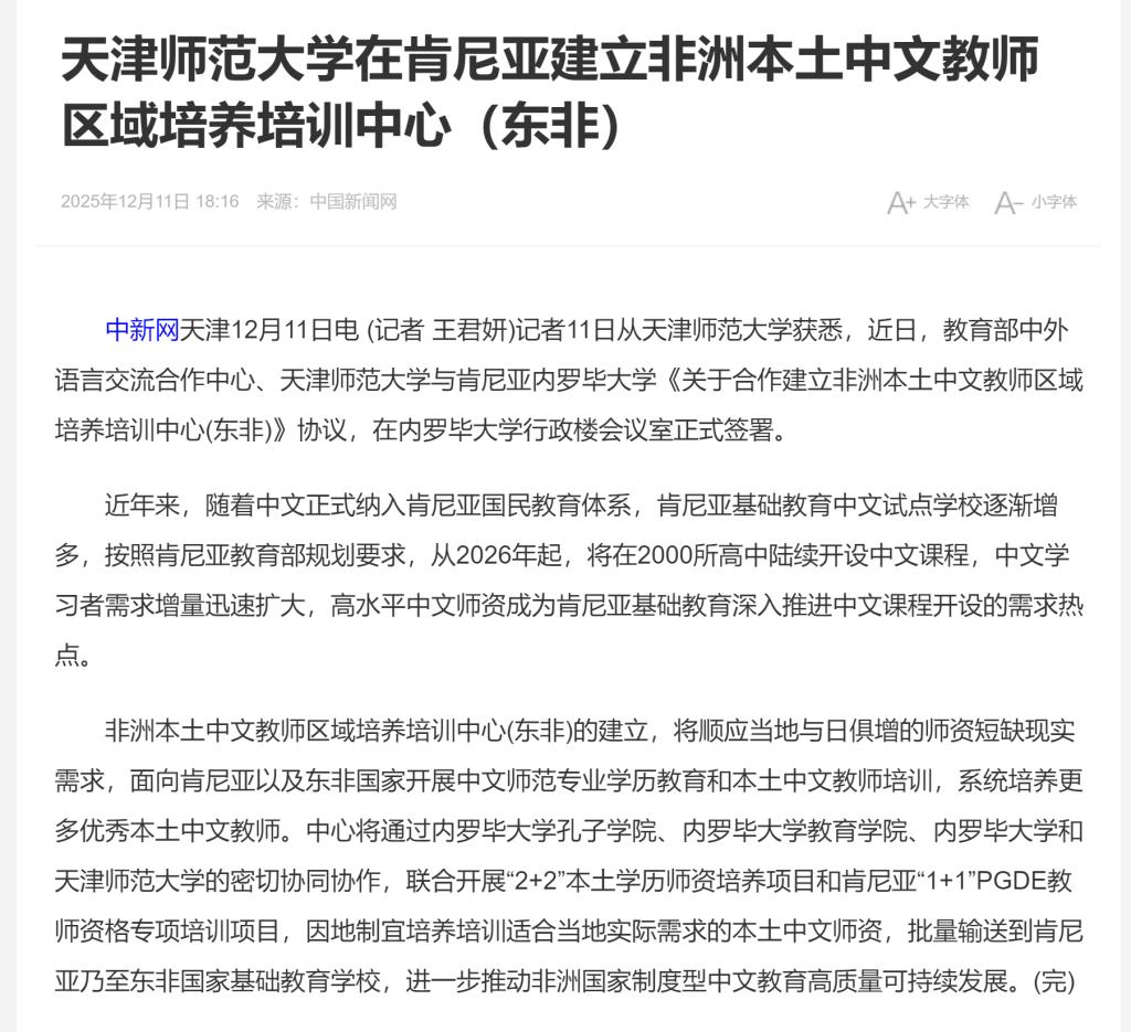 中国新闻网 | 天津师范大学在肯尼亚建立非洲本土中文教师区域培养培训中心(东非)