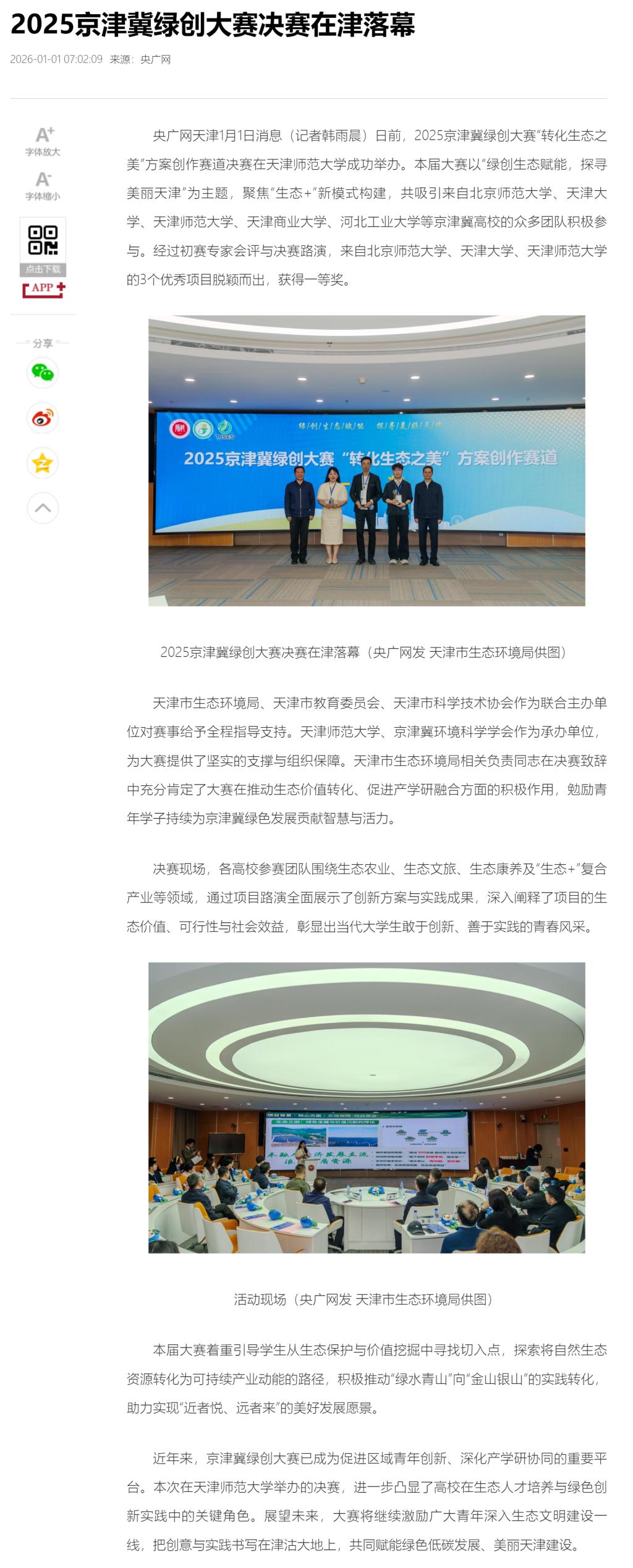 央广网 | 2025京津冀绿创大赛决赛在津落幕