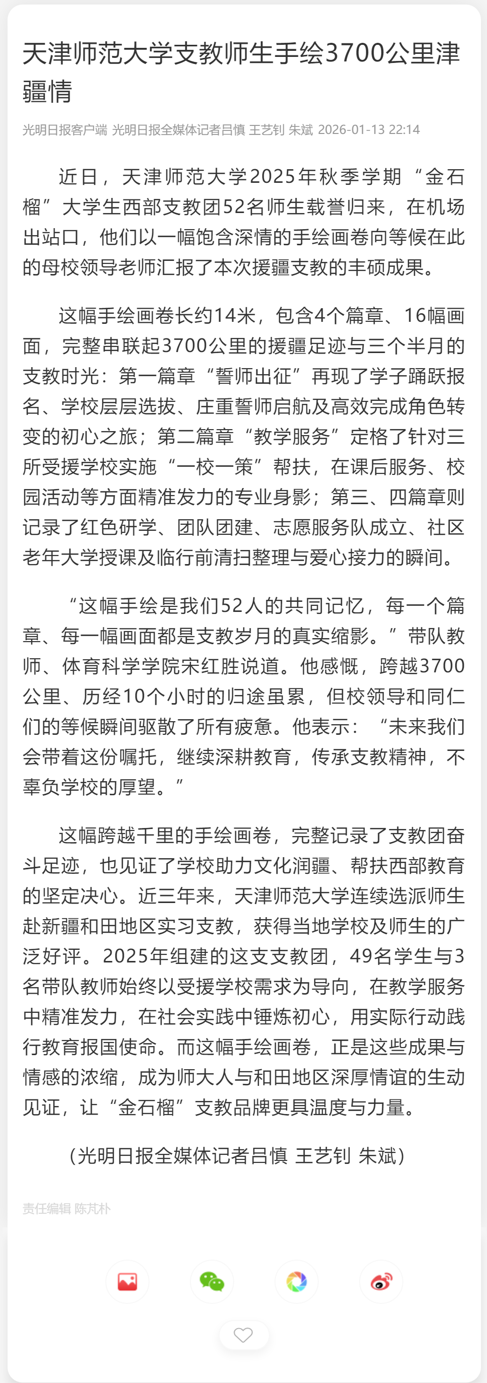 光明日报客户端 | 天津师范大学支教师生手绘3700公里津疆情