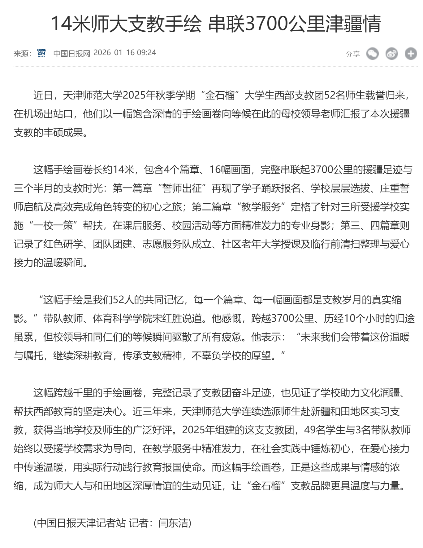 中国日报网 | 14米师大支教手绘 串联3700公里津疆情