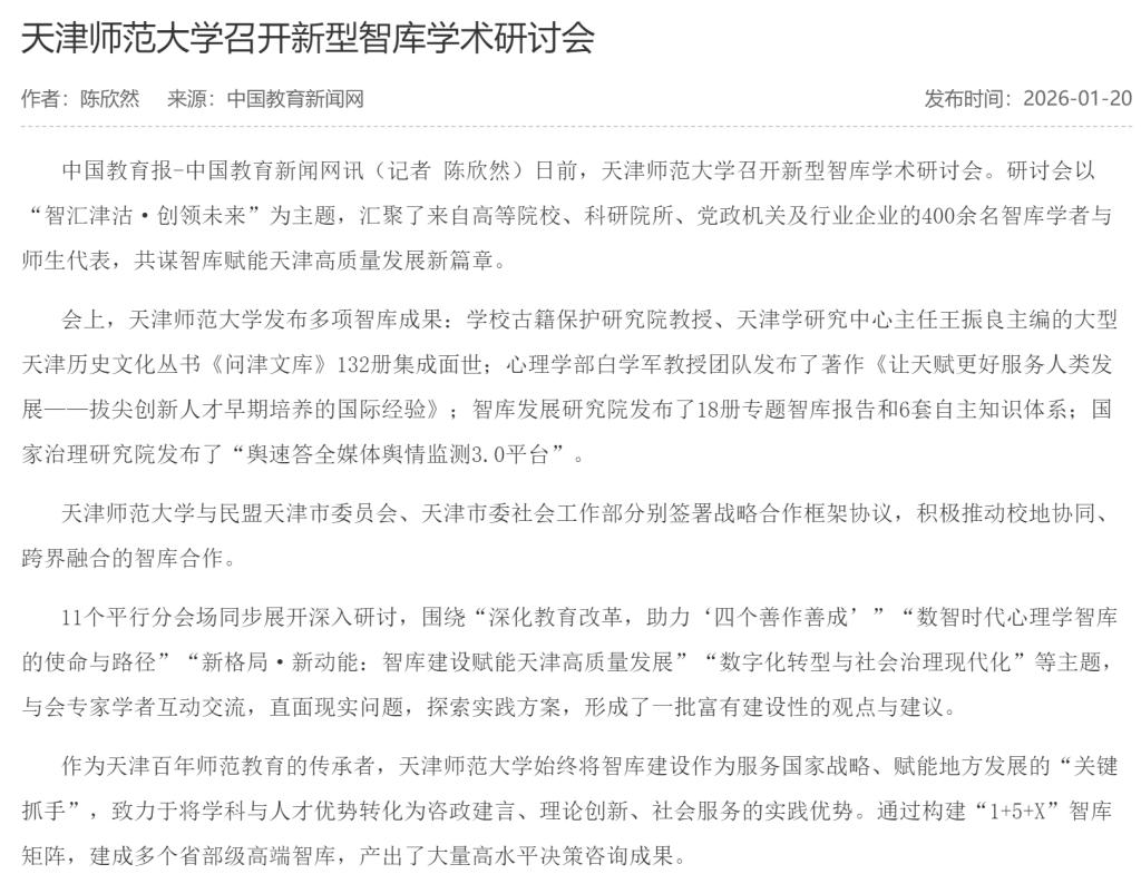 中国教育新闻网 |天津师范大学召开新型智库学术研讨会