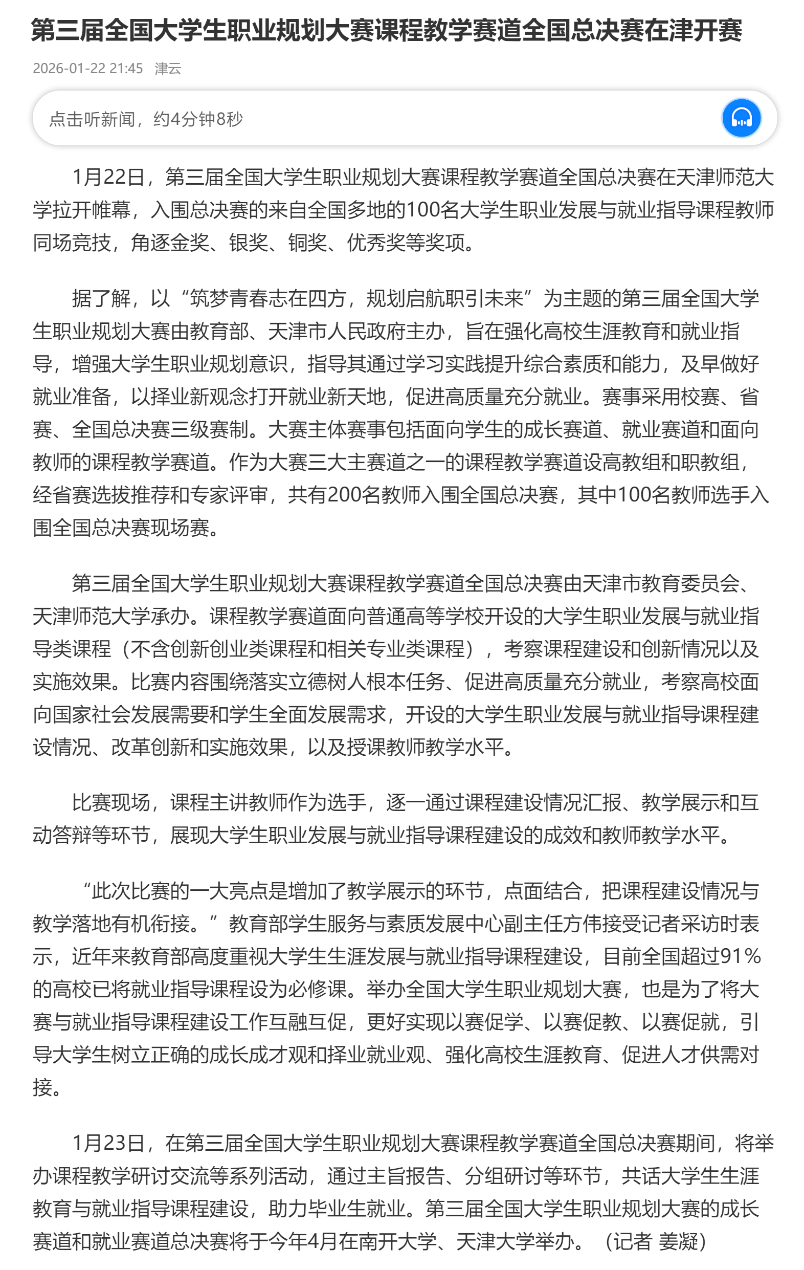 津云 | 第三届全国大学生职业规划大赛课程教学赛道全国总决赛在津开赛