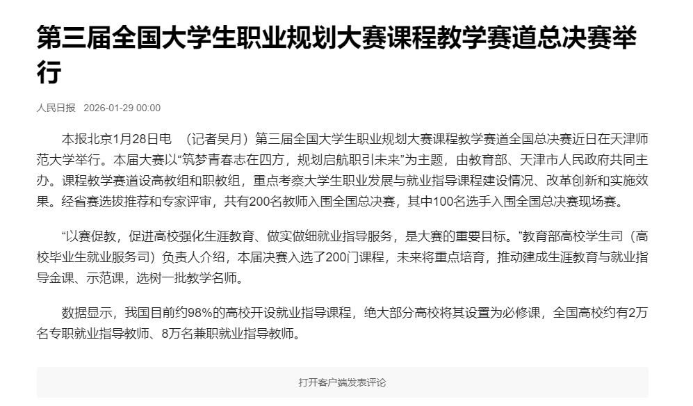 人民日报客户端 | 第三届全国大学生职业规划大赛课程教学赛道总决赛举行