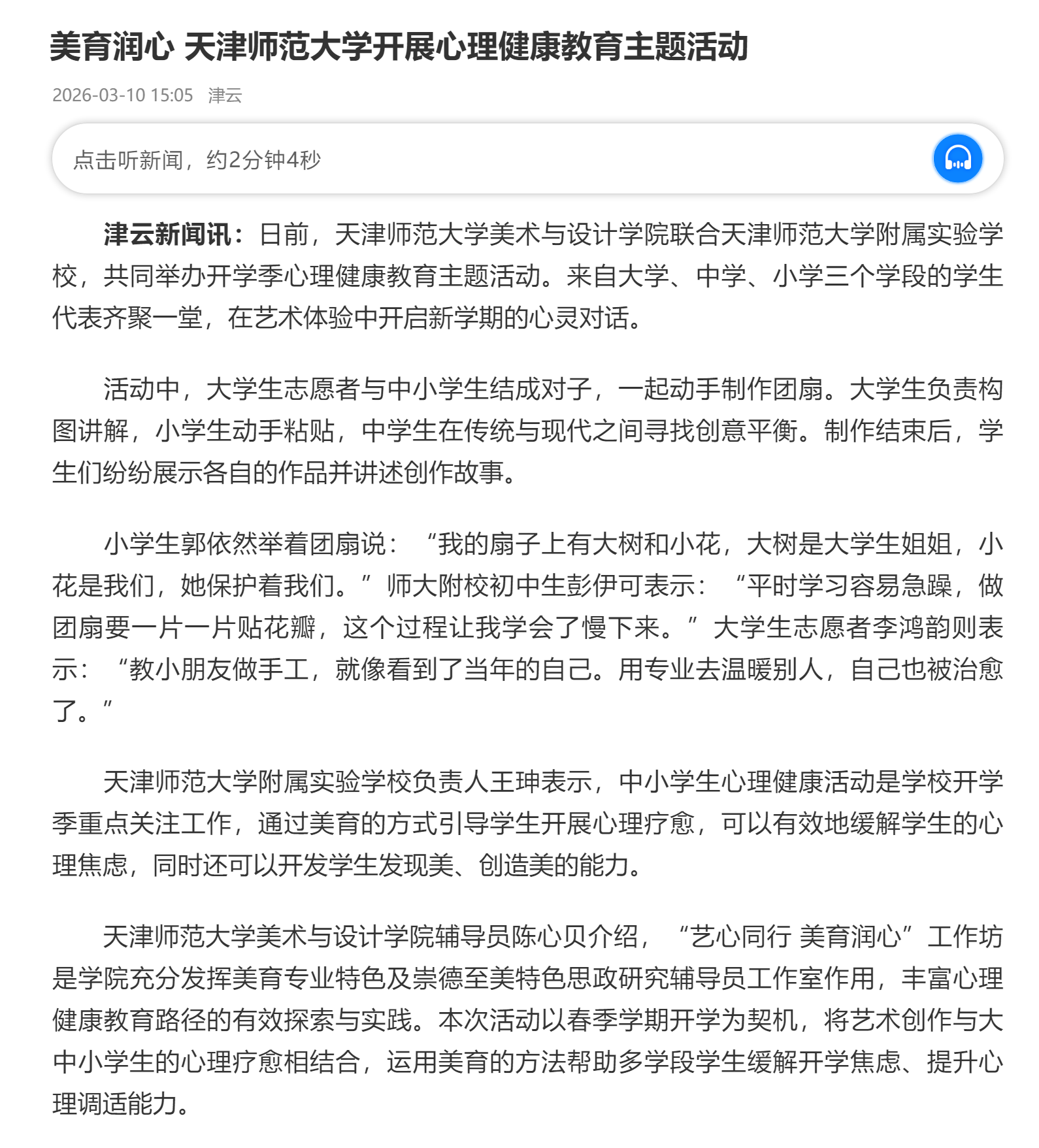 津云 | 美育润心 天津师范大学开展心理健康教育主题活动