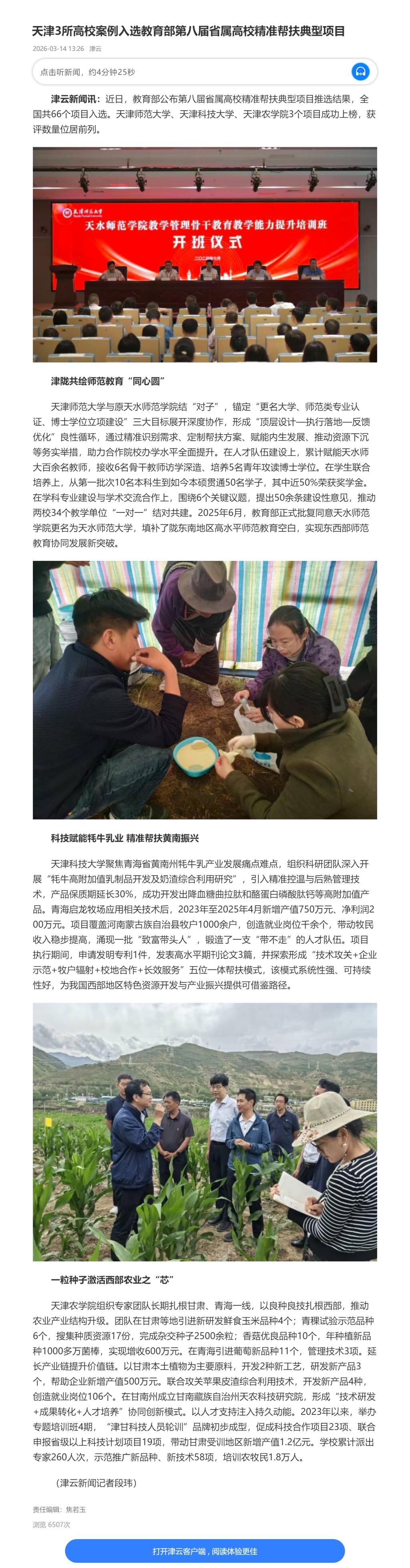 津云 | 天津3所高校案例入选教育部第八届省属高校精准帮扶典型项目