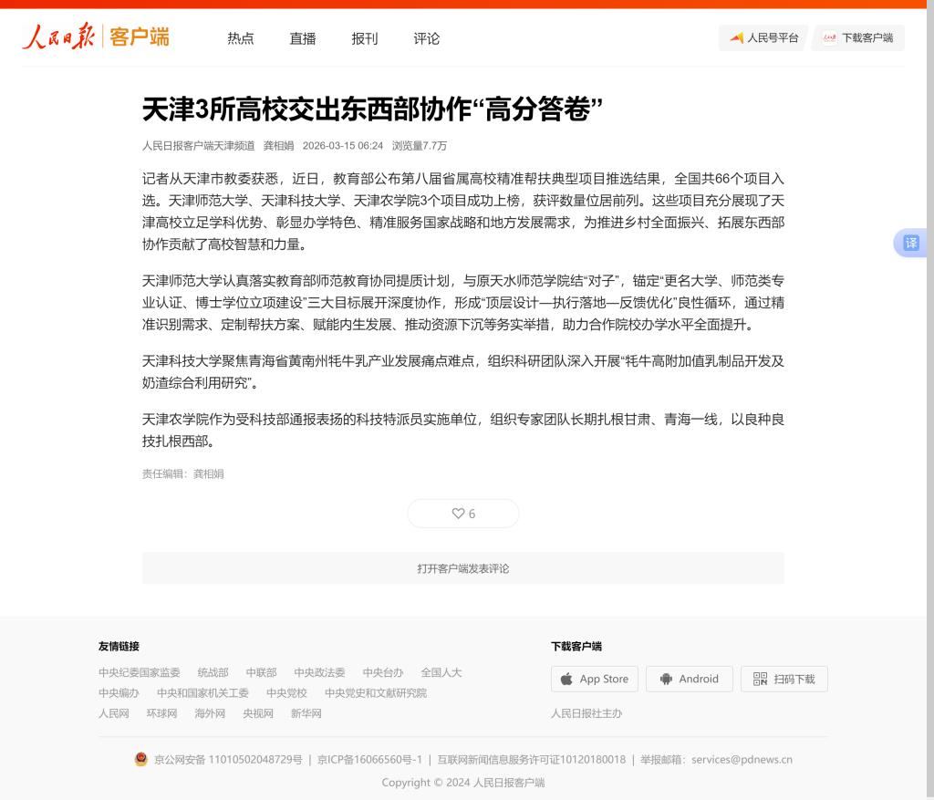 人民日报客户端 | 天津3所高校交出东西部协作“高分答卷”
