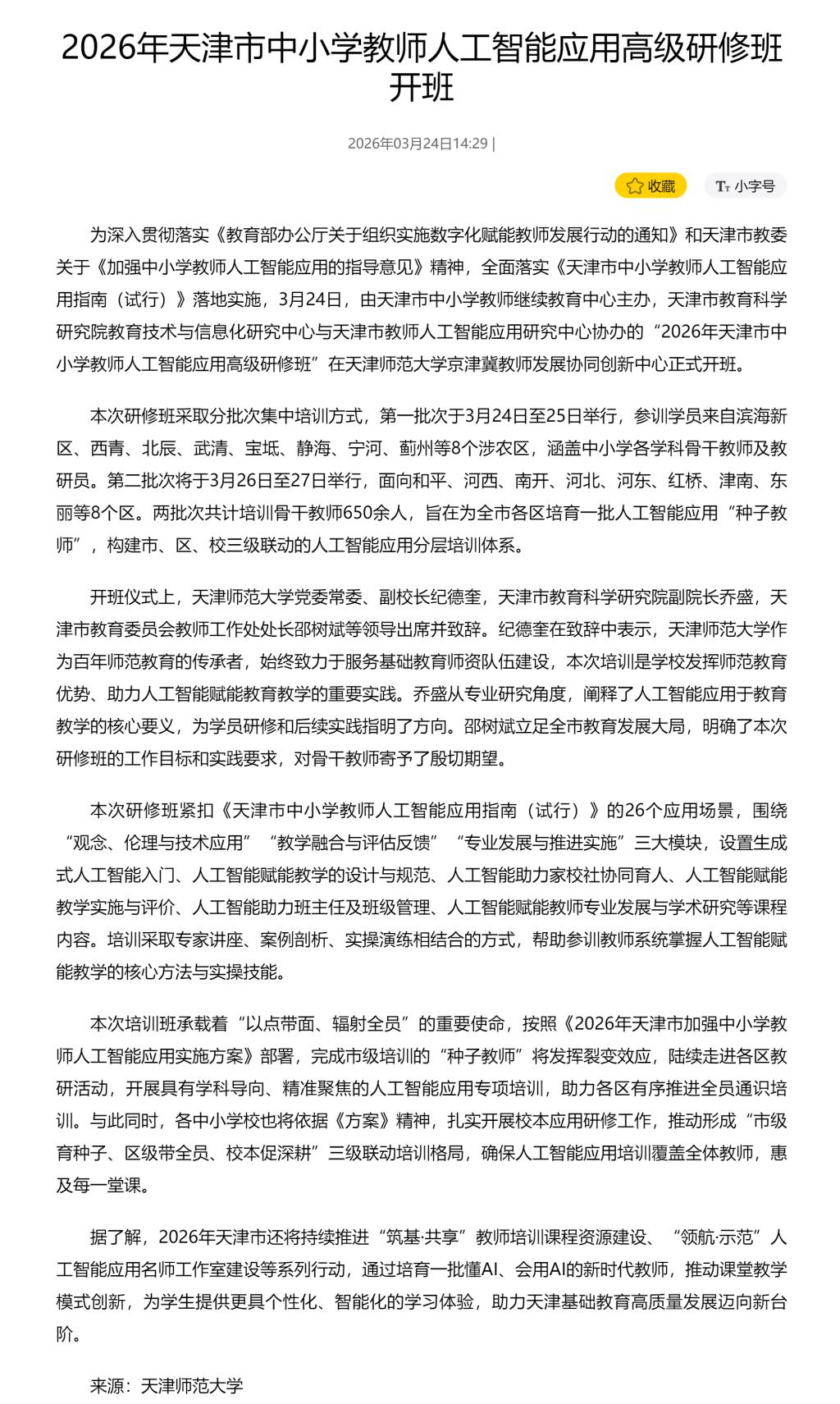 人民网 | 2026年天津市中小学教师人工智能应用高级研修班开班
