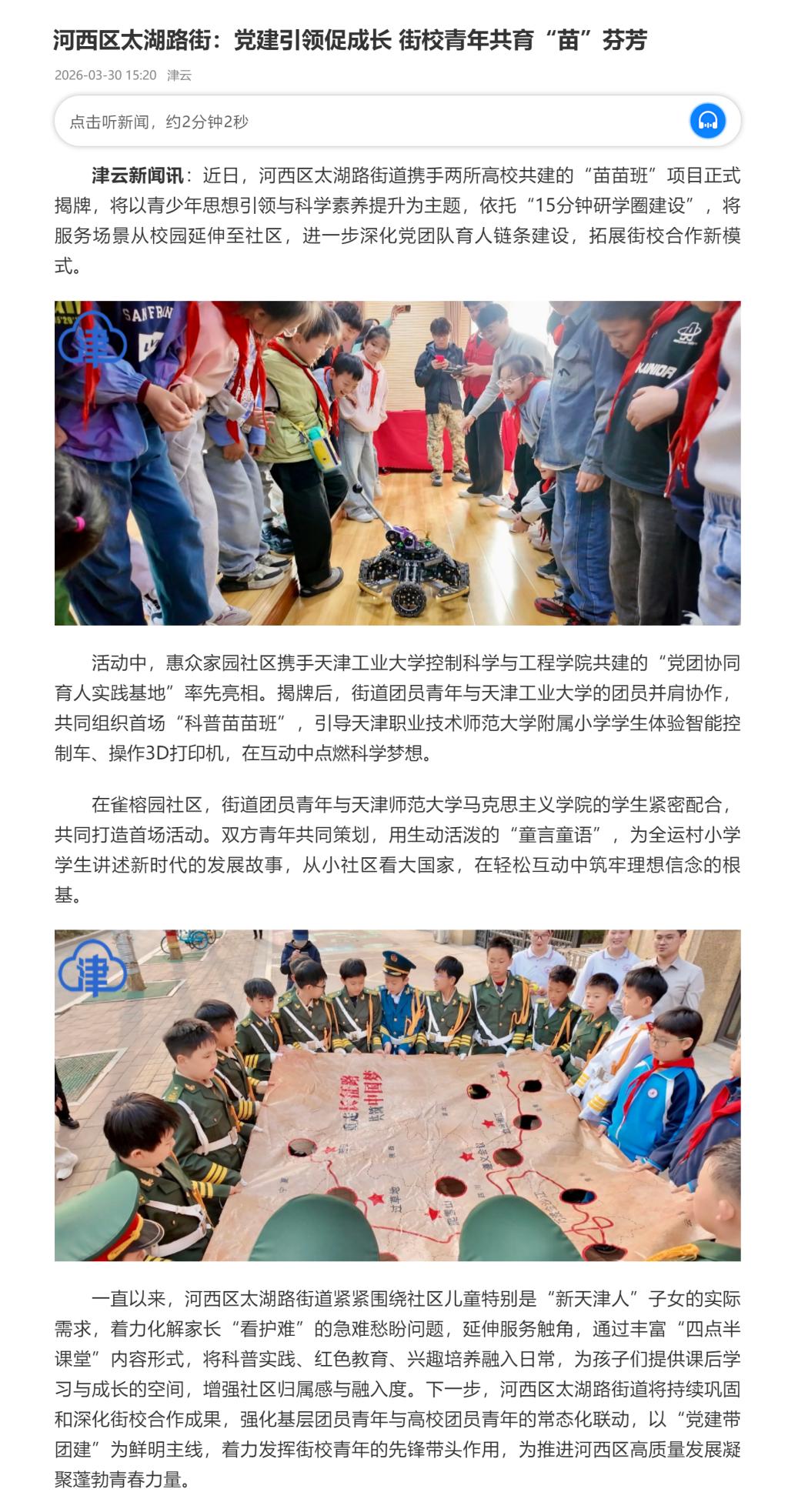 津云 | 河西区太湖路街:党建引领促成长 街校青年共育“苗”芬芳