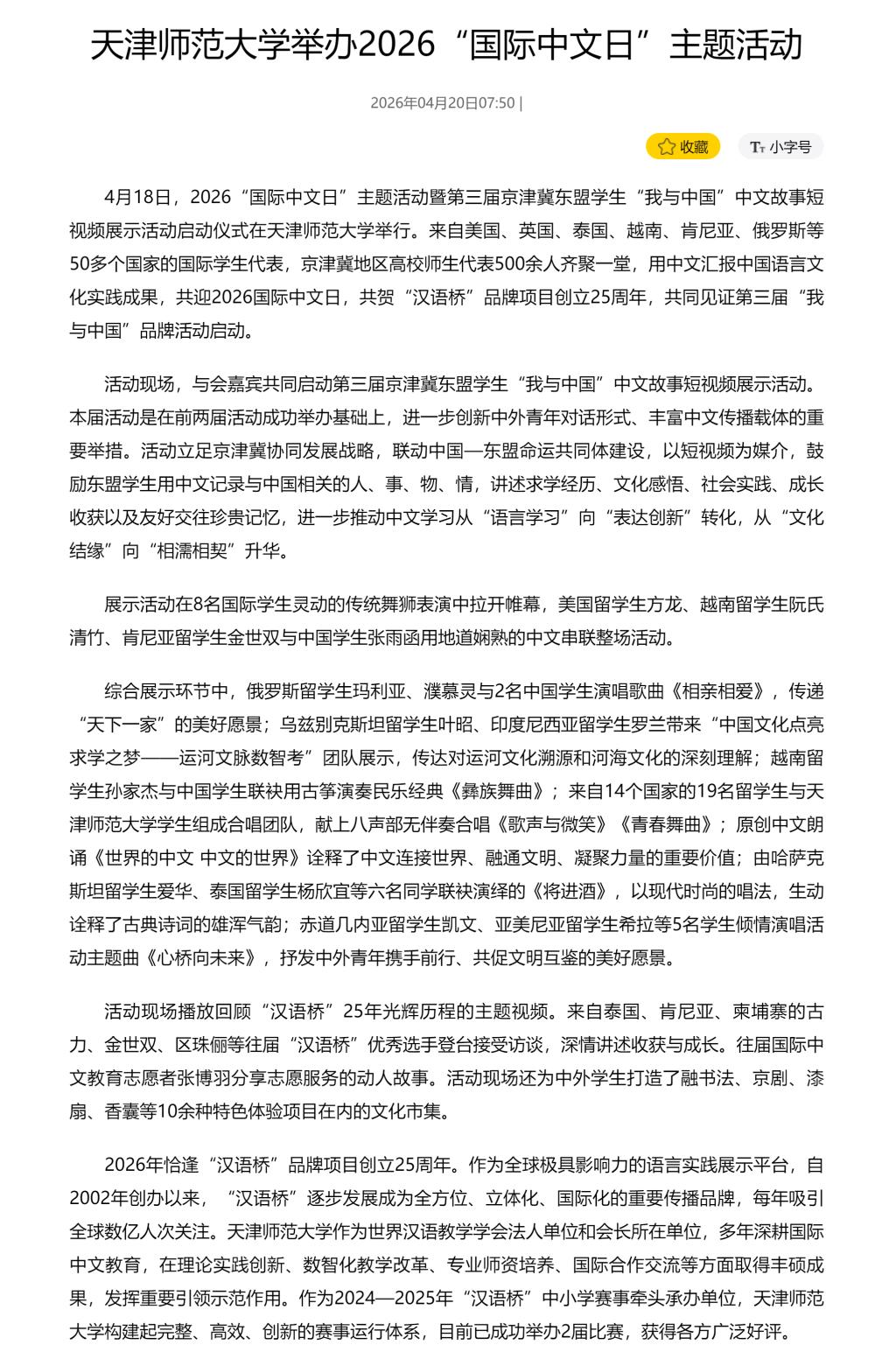 人民网 | 天津师范大学举办2026“国际中文日”主题活动