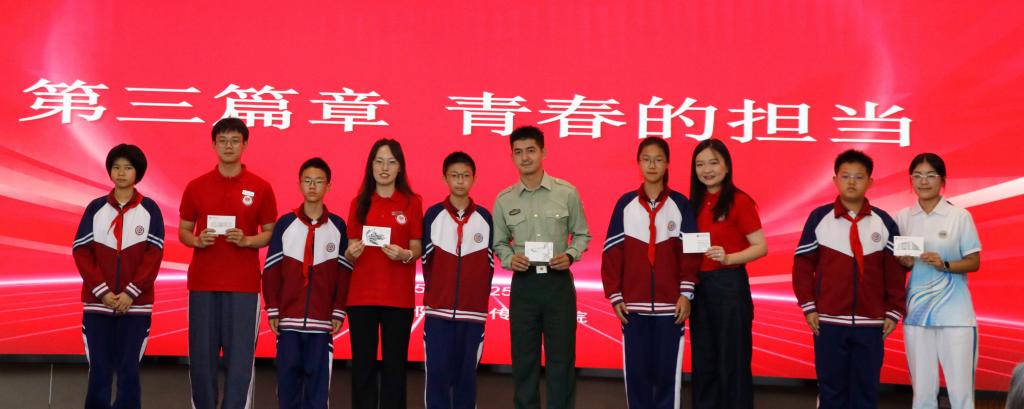 活动尾声,天津师大附校中学生代表向青年榜样送上筑梦接力卡片,稚嫩的笔迹书写着“长大后我要成为你”的承诺。新闻传播学院学生代表以原创诗歌《青春的故事》朗诵,将现场气氛推向高潮。