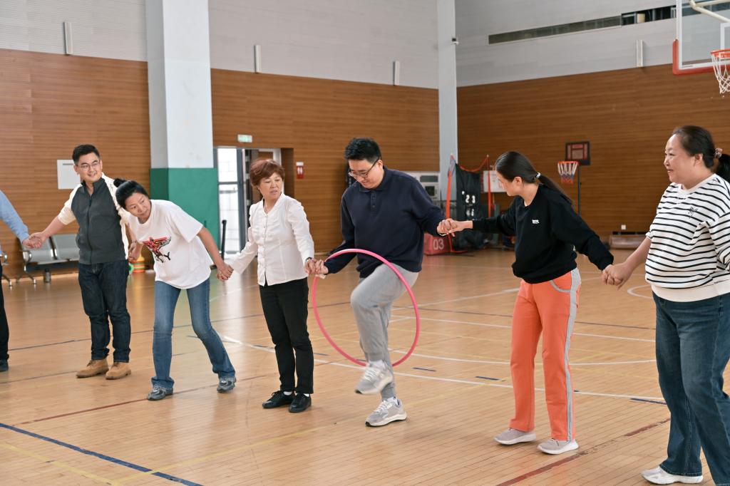 本站讯(通讯员 孙智慧)为加强教师关心关爱,落实尊师惠师若干举措,有效帮助教师释放压力,培育理性平和、积极向上的健康心态,提升教师心理健康素养。10月15日下午,我校在体育馆二楼篮球场举办“聚力减压,焕活‘心’能量”教师团体心理拓展活动。各基层党委、党总支教师工作干部,机关各部门干部20余人参加。活动由党委教师工作部部长、教师发展中心主任刘红英主持。