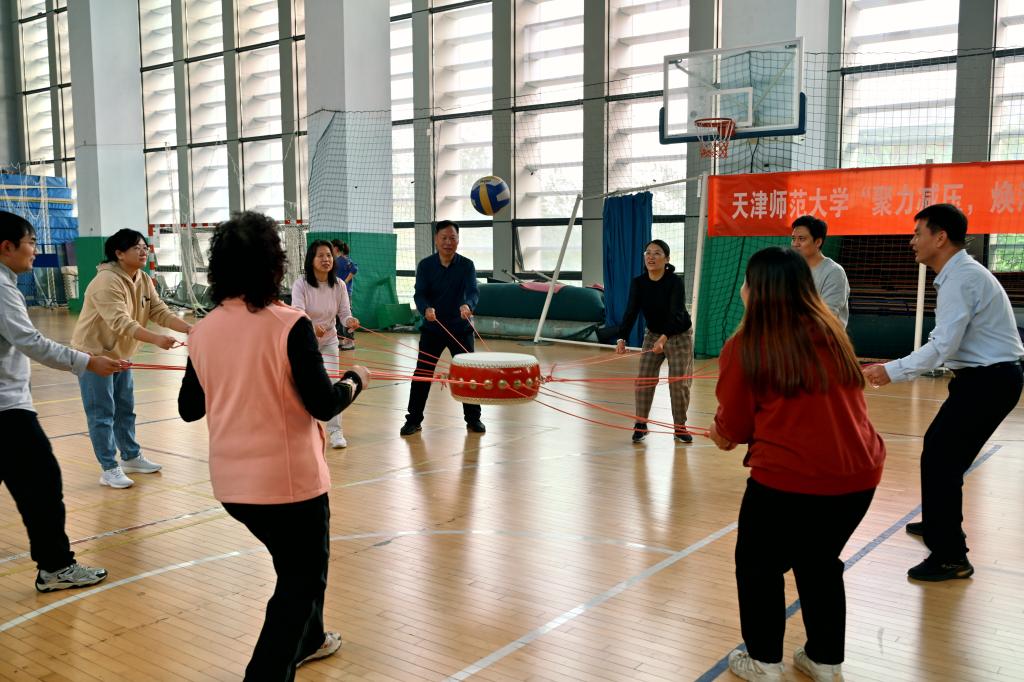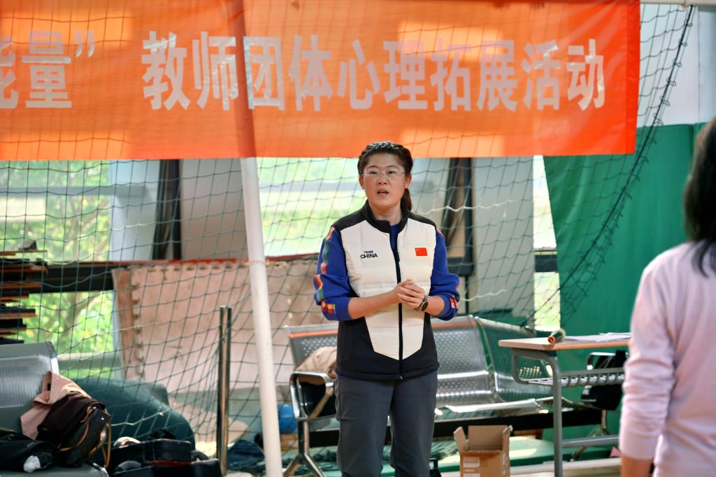 活动邀请学校体育科学学院教师艾丽欣担任引导,她凭借专业的运动心理学和团体心理辅导等相关知识,带领老师们凝心聚力,共同完成了一场深入人心的团队心灵之旅。活动现场气氛热烈,老师们积极配合,通过“松鼠搬家”快速破冰,拉近彼此之间距离,“趣味接力赛”“心有千千结”“情绪垃圾站”“默契穿越”“击鼓颠球”各环节层层递进,老师们一步步卸下工作中的疲惫,感受心与心的交流,体验彼此默契配合、团队协作的力量,将“情绪包袱”转化为彼此的共情与鼓励。在沉浸治愈的舒压氛围里释放内心压力,以更积极、更强健的心理状态为教育工作蓄力。