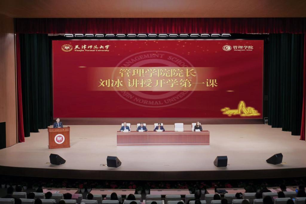 本站讯(通讯员 时晟蓉)10月16日,天津师范大学管理学院在国际中文教育交流中心举办开学第一课暨师生联欢活动。学院党委副书记、院长刘冰以《在“内卷”与“躺平”之间:寻找属于你们的广阔天地》为题,为全体新生带来一场富有思辨性与启发性的开学第一课。