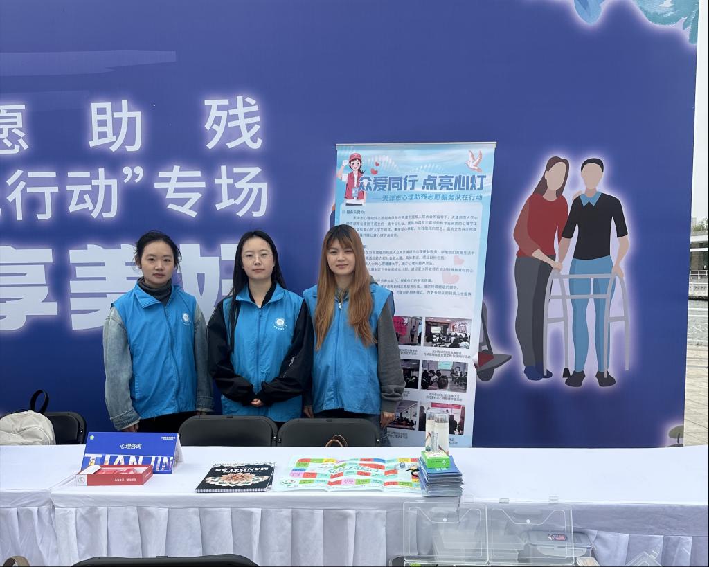 本站讯(通讯员 于海涛)近日,由天津市残疾人联合会、中共天津市委社会工作部、天津市交通运输委员会、共青团天津市委员会和天津市妇女联合会联合主办的2025年“津志集”志愿服务公益市集——志愿助残“阳光行动”专场活动在水上公园水晶广场举行。心理学部师生作为天津市心理助残志愿服务队代表,在助残专业服务区开展公益心理咨询服务。