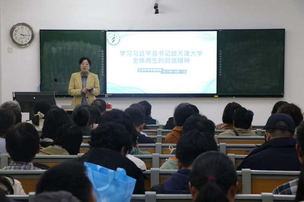 本站讯(通讯员 孙宝琳)近日,生命科学学院党委组织中心组成员、师生党员开展专题学习活动,深入学习领会习近平总书记给天津大学全体师生的回信精神,学院党委书记石婕主持并领学。